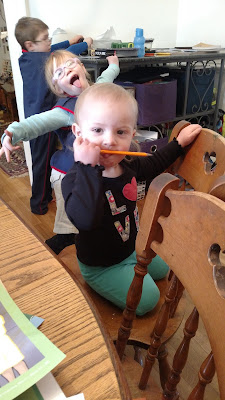 Drawing class...they drew a race car. Jadon's drawings are always quite small compared to the amount of space he has.